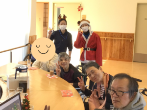 職員もサンタとトナカイの被り物をして参加しました。