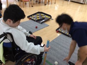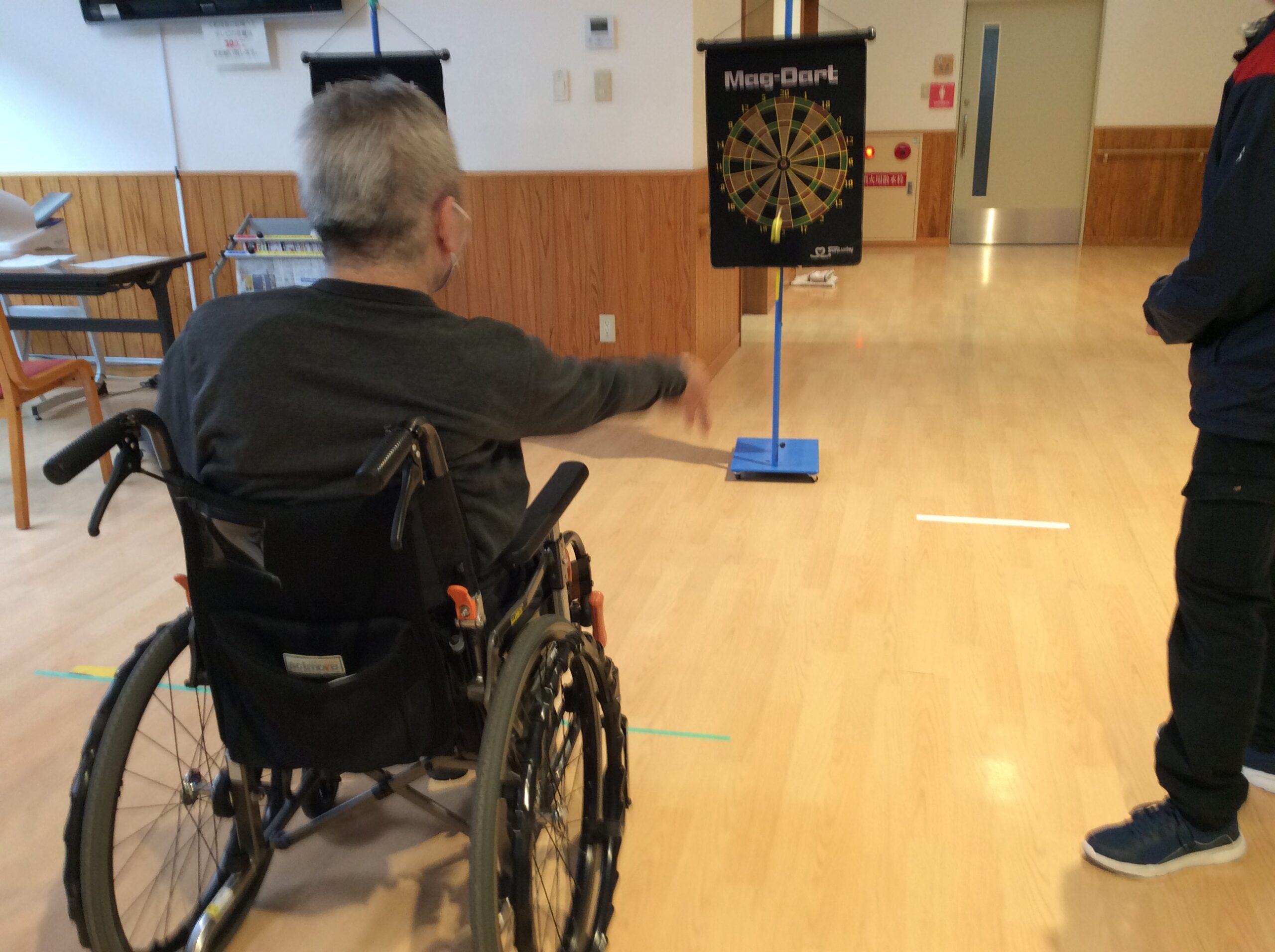 12月25日のクリスマスの日に今年度3回目となるミニレク大会を実施しました。今回は、園内にクリスマスソングを流しながらポケットボール・ダーツ・ディスゲッターの3種目の競技を行いました。