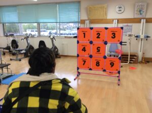 フライングディスクを9回投げて、9枚のパネルのうち何枚抜けるかを競います。1枚でも多くのパネルを抜こうと皆さん真剣にディスクを投げていらっしゃいました。