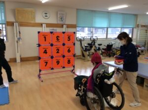 的を狙ってダーツを投げます。5回投げた合計得点で競います。的が狭く皆さん難しそうでした。
