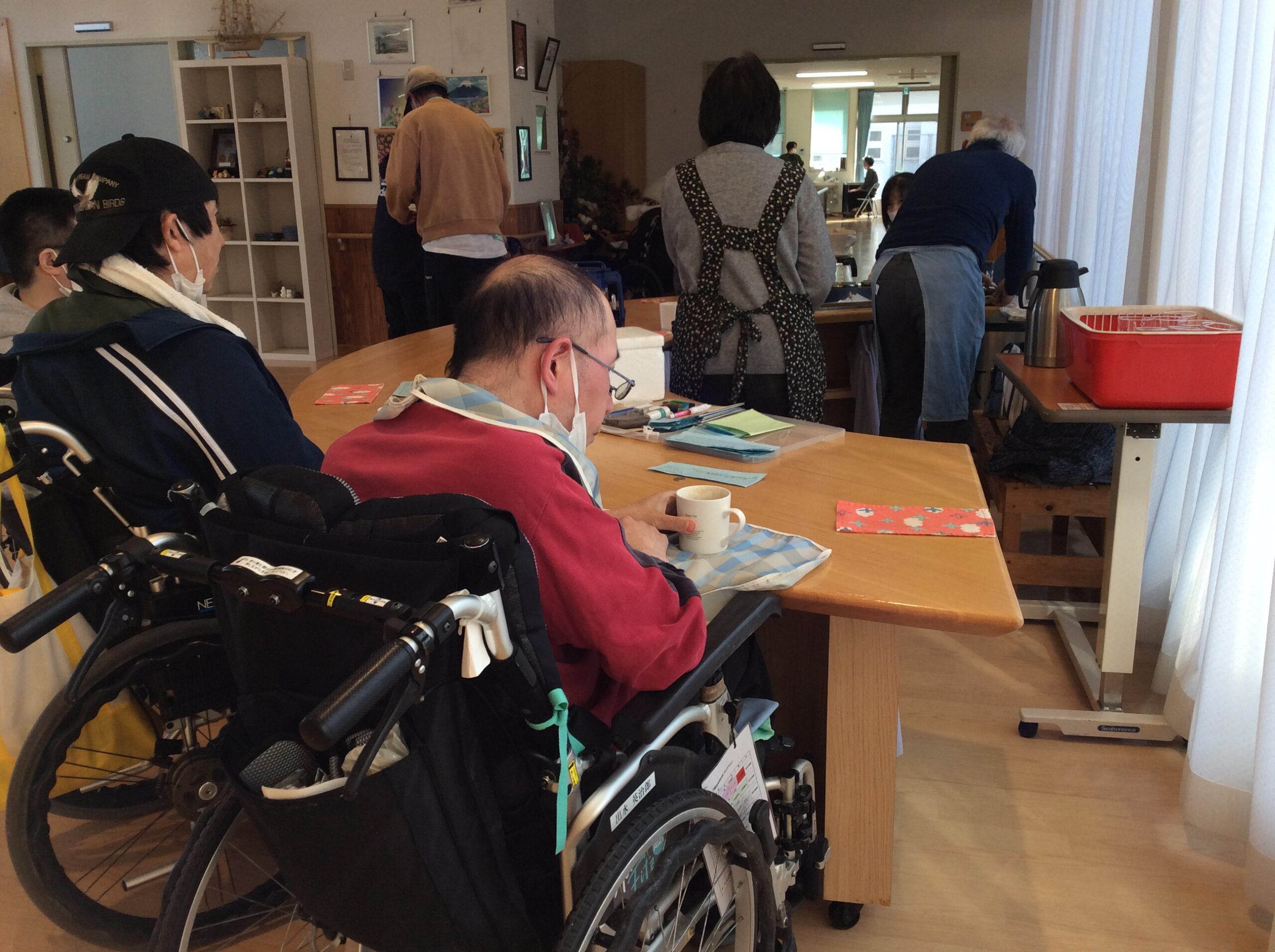 2026年01月18日 1月喫茶ゆす 1月13日(火)に毎月1回の恒例行事「喫茶ゆす」を開催しました。 コーヒーとともに季節を楽しんでいただこうと、飾りつけを行いました。 1月のテーマは「お正月」 職員手作りの鏡餅の被り物を身に着けていただくと、 「かわいいね」「私も被りたい!」といった声が上がり会話も弾みました 。 コーヒーも「あったかい」「また飲みたい」と好評で、 皆様に笑顔で楽しんでいただけました。 来月の「喫茶ゆす」もお楽しみに♪ #恒例行事 #お正月 #喫茶ゆす