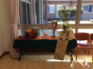 鏡開きでは、ぜんざいを提供しました。安心して食べていただけるように切り餅とやわらか福もちを使用しました。「やわらかい」「お餅久しぶりに食べる!」「美味しいね~」と喜んでいらっしゃいました。