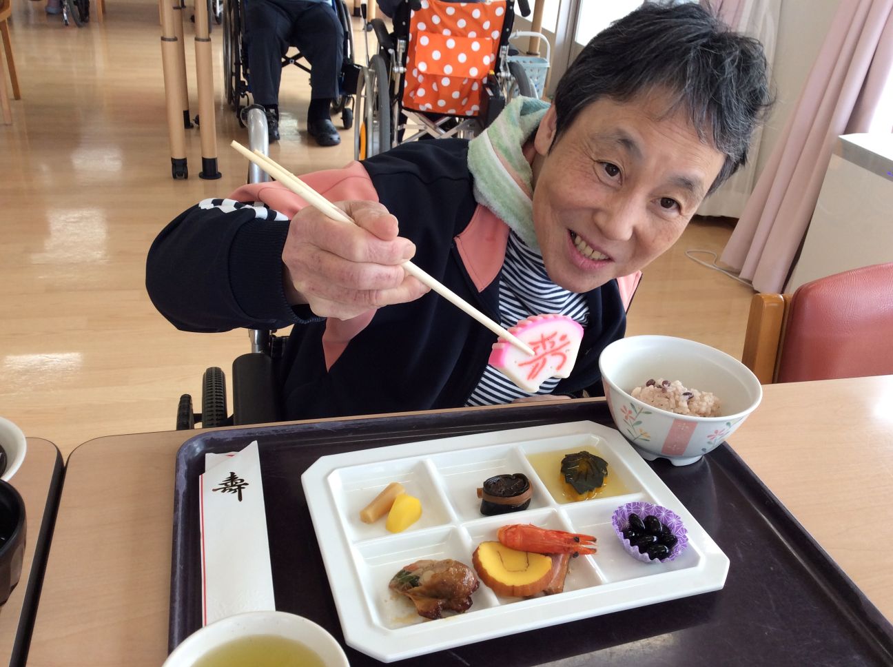 お正月メニューのおせち盛りは、品数も多く、利用者の皆様にお正月の雰囲気を味わっていただきました。