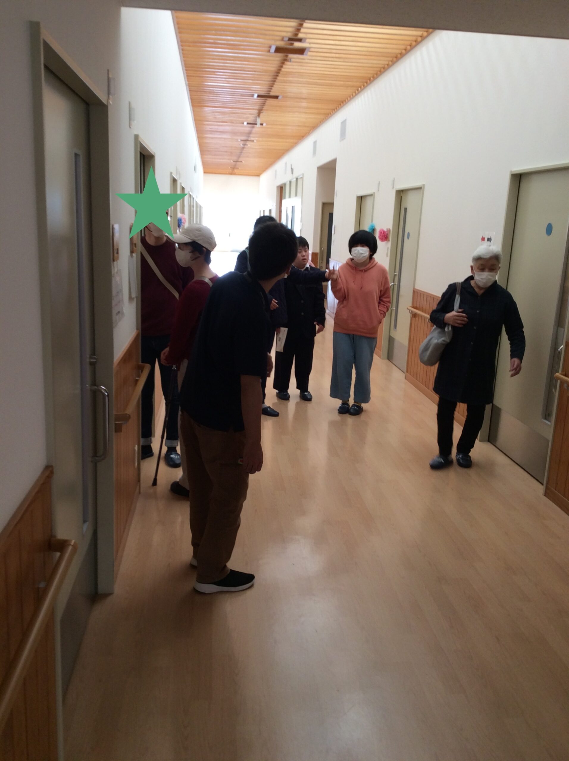 次に、訓練室・居室・浴室・トイレなど園内を実際に見学していただき、住環境について確認していただきました。